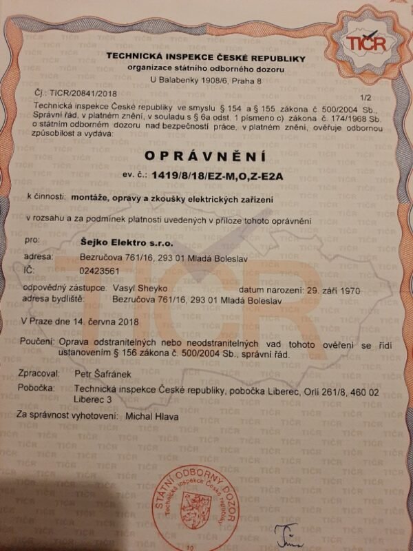 Společnost Šejko Elektro s.r.o. je profesionální firmou se sídlem v v Mladé Boleslavi, která se specializuje na poskytování elektro instalačních služeb, revizí. Zaměřuji se hlavně na průmyslové elektroinstalace. S naším týmem kvalifikovaných odborníků jsme schopni zajistit kompletní elektro instalace a revize všech typů budov, včetně bytových jednotek, rodinných domů, komerčních prostor.